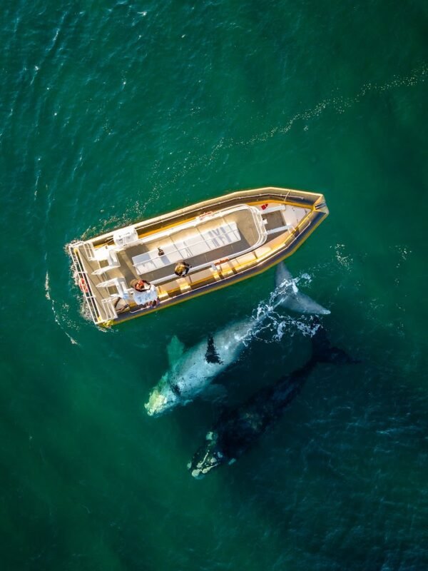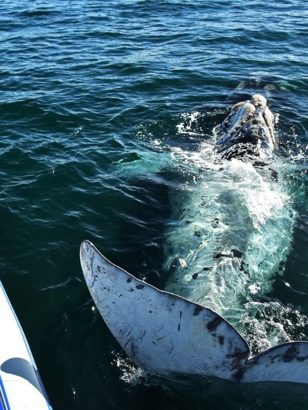 Após uma breve palestra introdutória do capitão e do guia do barco, embarcaremos na embarcação, que será rebocada por um trator até o mar aberto. Em seguida, iniciaremos a busca por um grupo de baleias; o guia fornecerá informações sobre esses mamíferos impressionantes enquanto o capitão nos orientará na aproximação.