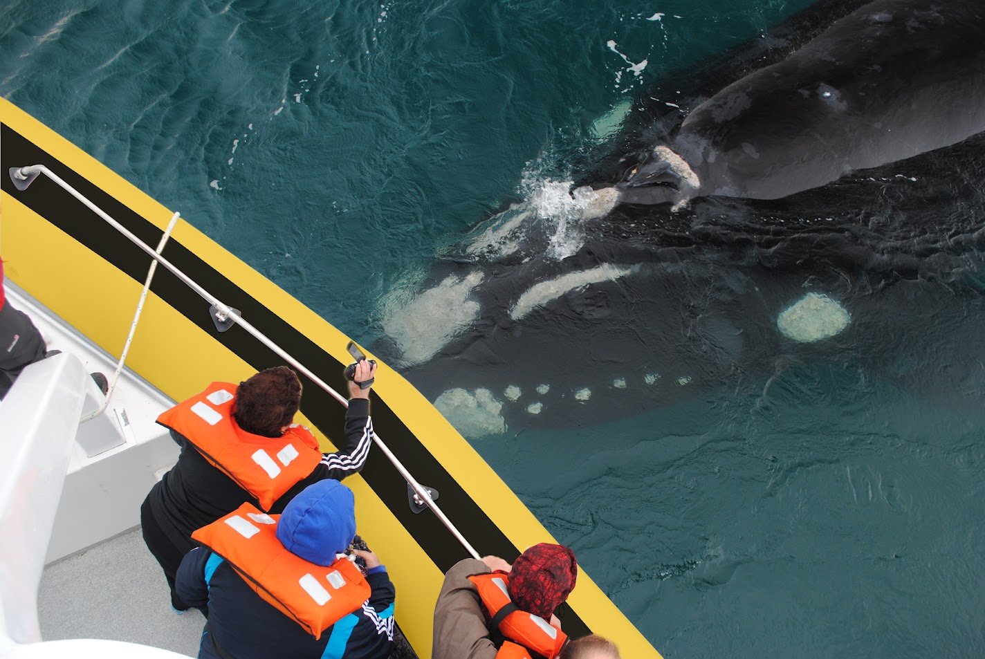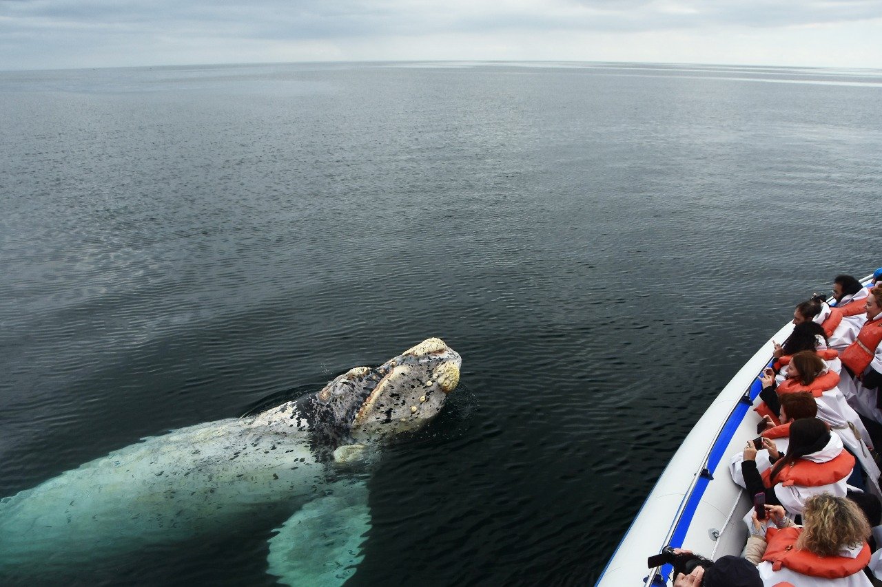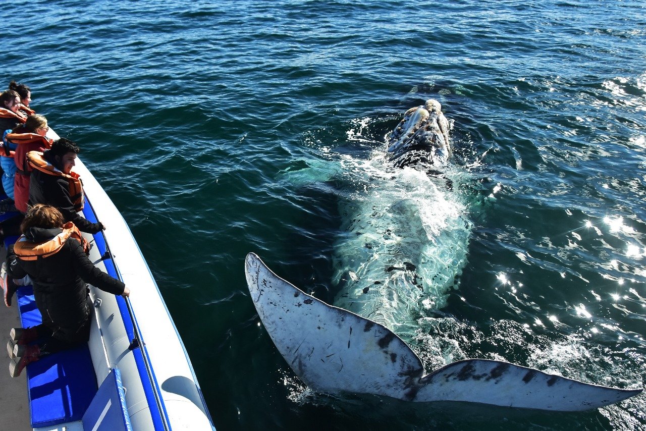 Após percorrer os 100 km que separam Puerto Madryn de Puerto Pirámides, poderemos embarcar em barcos especialmente equipados e preparados para a observação de baleias (baleia-franca-austral).