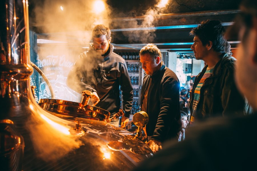 Fazemos um mini tour pela fábrica, onde conhecemos o processo de produção dessa cerveja artesanal icônica.