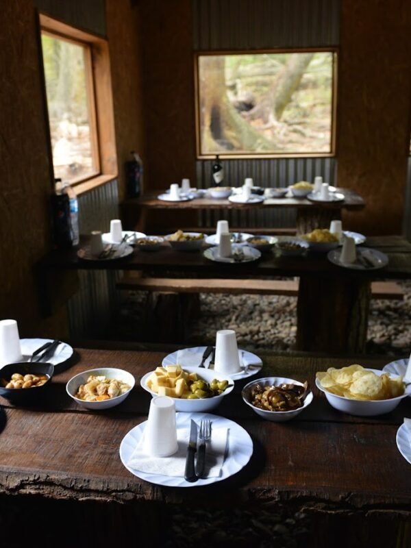 Almuerzo caliente y abundante, preparado por los guías en un refugio de montaña.