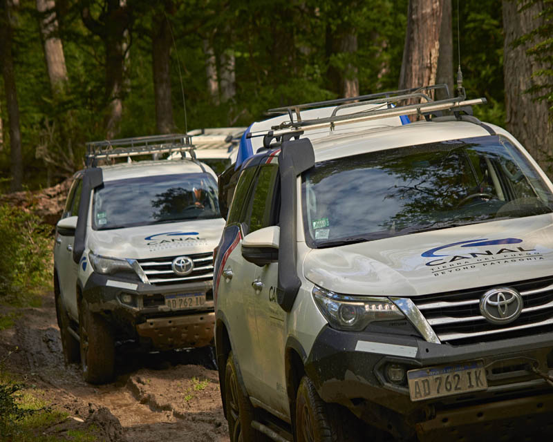 A partir daí, a jornada continua pela Rota 3, contornando as margens do Lago Escondido de sul a norte, antes de deixar a estrada asfaltada e aventurar-se por antigas trilhas de serraria. O terreno torna-se cada vez mais desafiador e emocionante: trilhas lamacentas, travessias de rios e caminhos intransitáveis para veículos convencionais transformam a viagem em uma verdadeira experiência off-road.