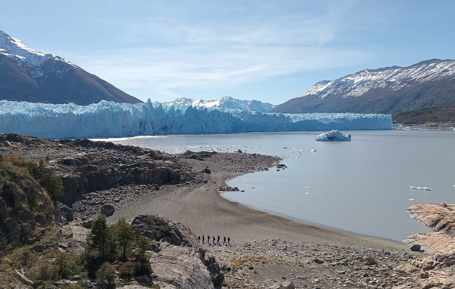 Ao desembarcar, os guias de montanha nos receberão e nos conduzirão até um refúgio com sanitários. Depois, iniciaremos uma breve caminhada de cerca de 1 km pela costa do lago, onde os guias darão uma introdução à glaciologia e às características únicas do Perito Moreno.