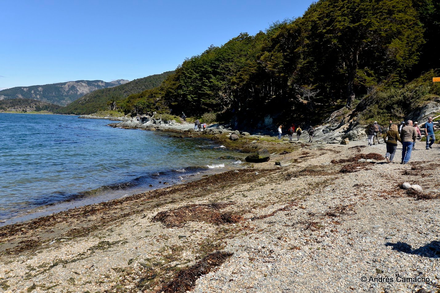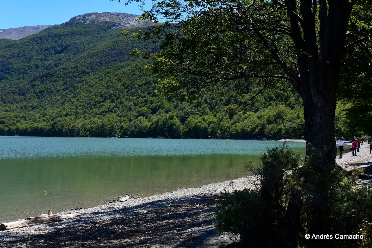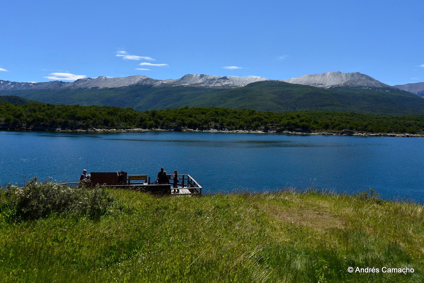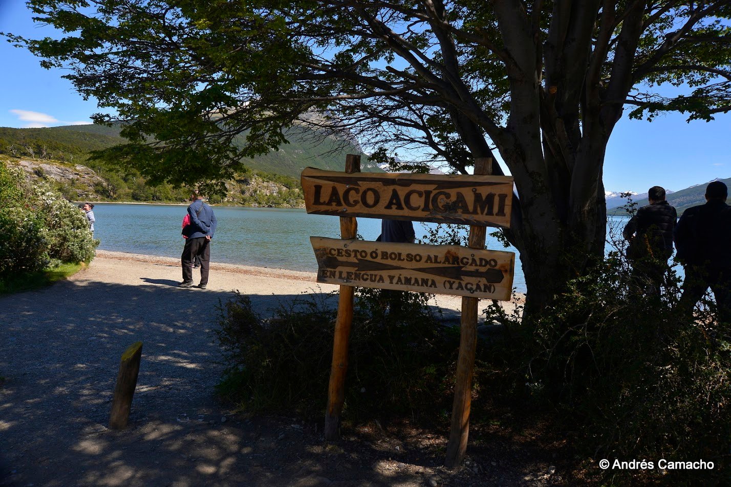 Depois continuamos até o Lago Acigami (ex Lago Roca), um lago de origem glacial rodeado por montanhas e florestas subantárticas. Caminhamos levemente por suas margens enquanto o guia explica sobre a geografia, fauna e história do parque.