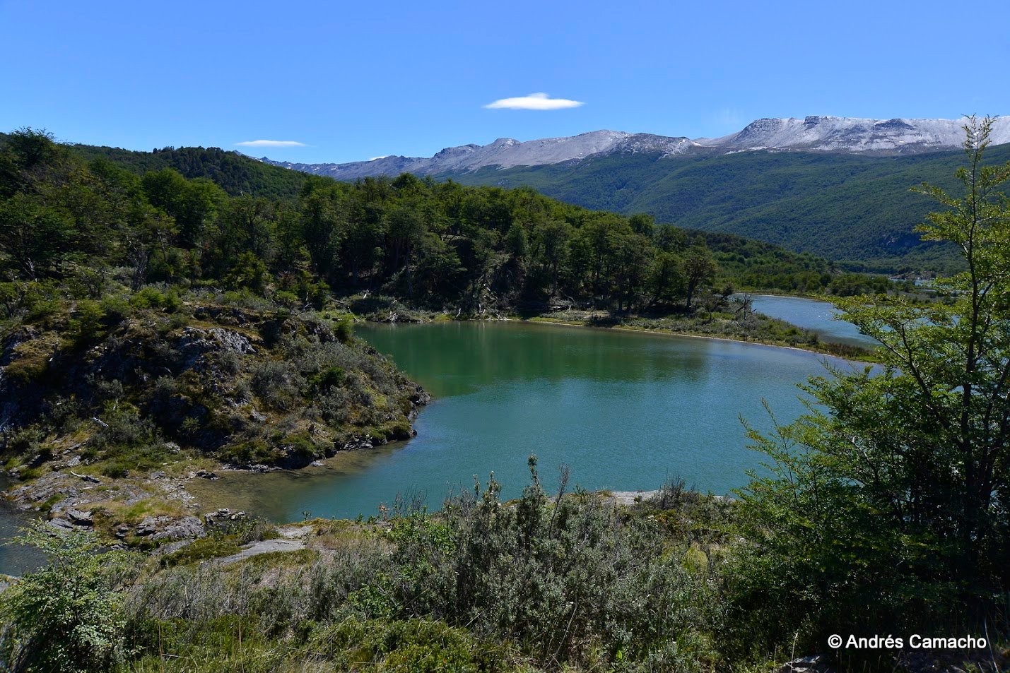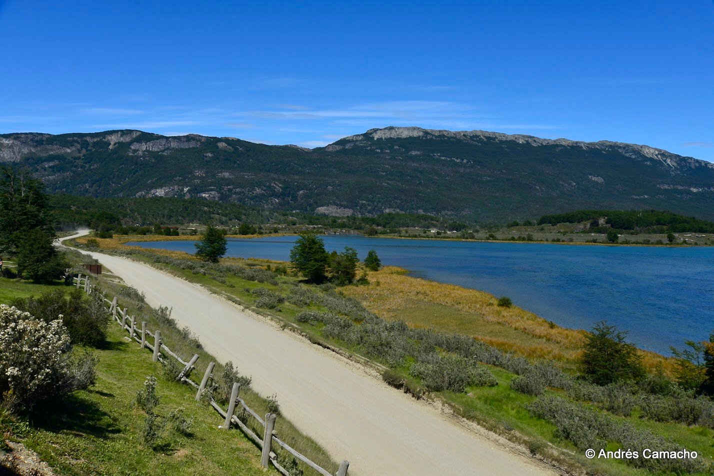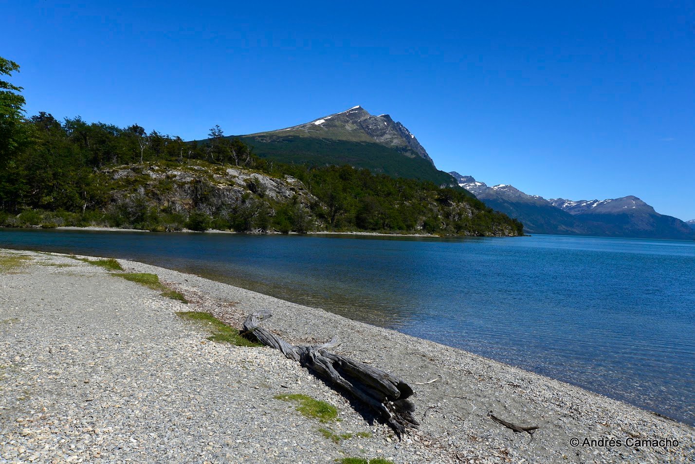 Depois continuamos até o Lago Acigami (ex Lago Roca), um lago de origem glacial rodeado por montanhas e florestas subantárticas. Caminhamos levemente por suas margens enquanto o guia explica sobre a geografia, fauna e história do parque.