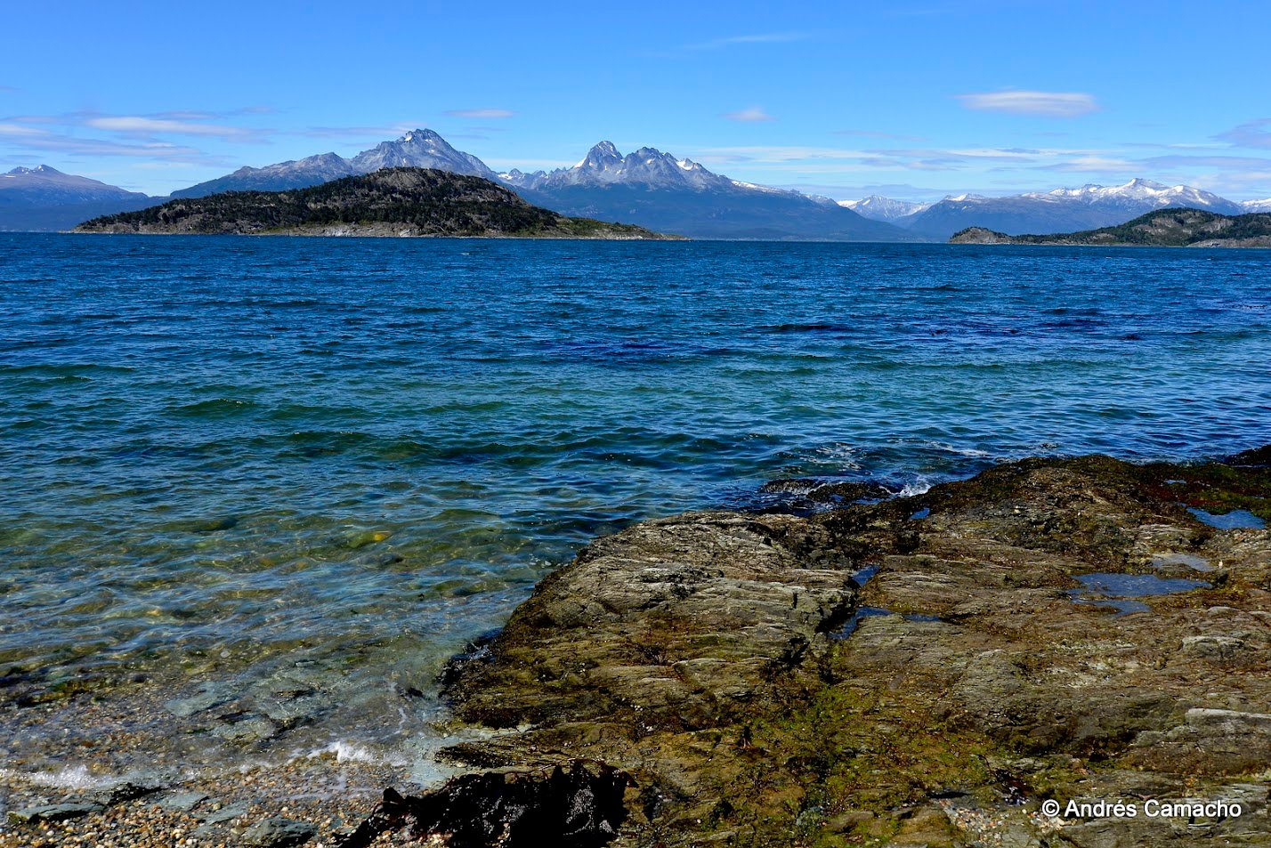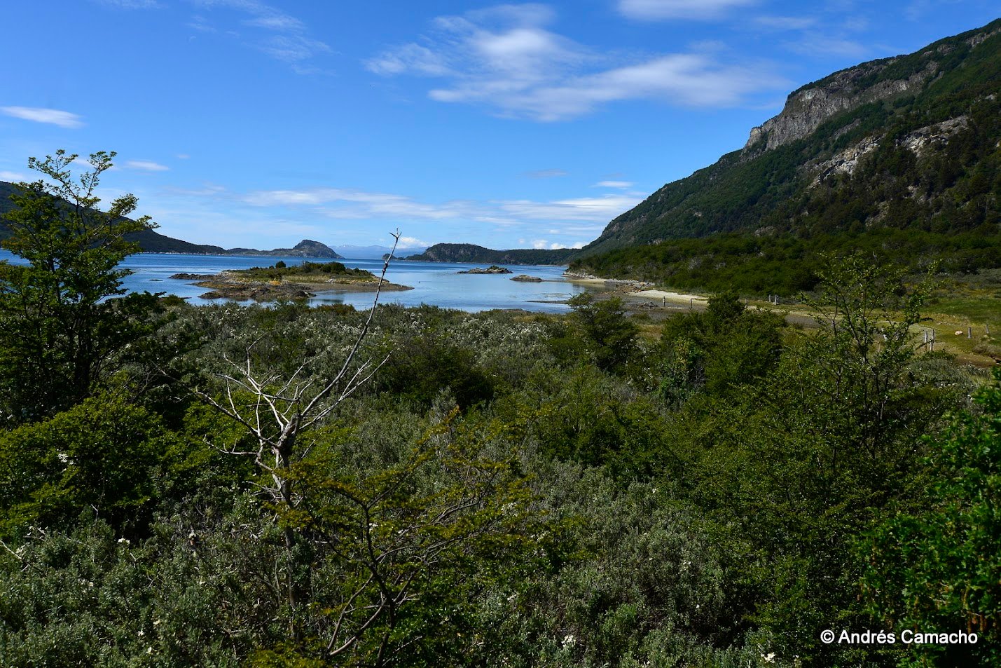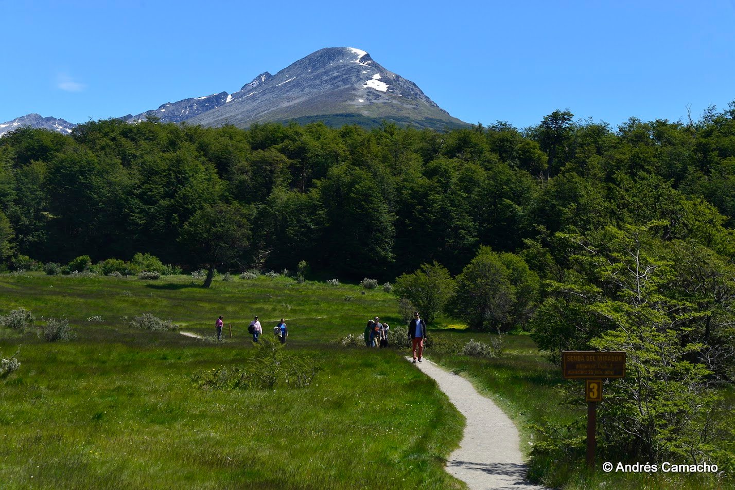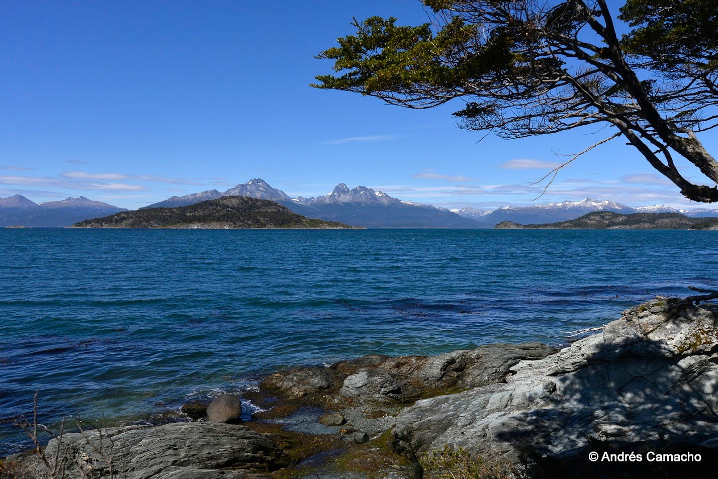 Depois continuamos até o Lago Acigami (ex Lago Roca), um lago de origem glacial rodeado por montanhas e florestas subantárticas. Caminhamos levemente por suas margens enquanto o guia explica sobre a geografia, fauna e história do parque.