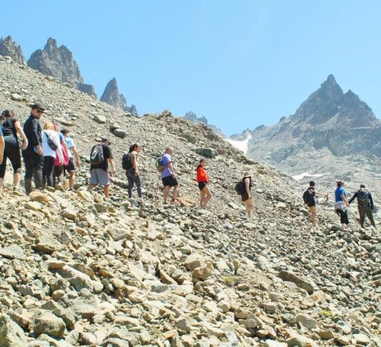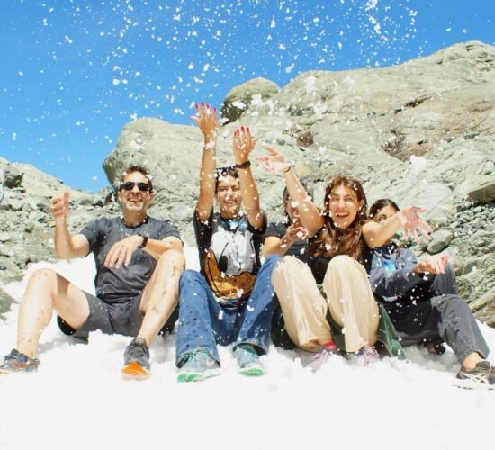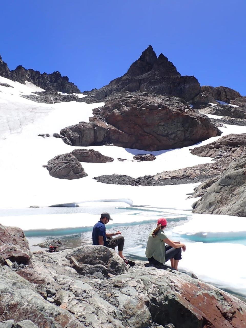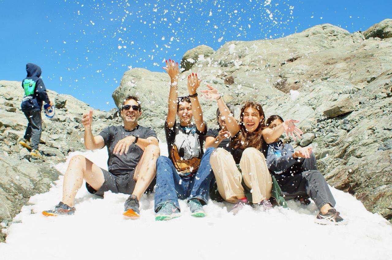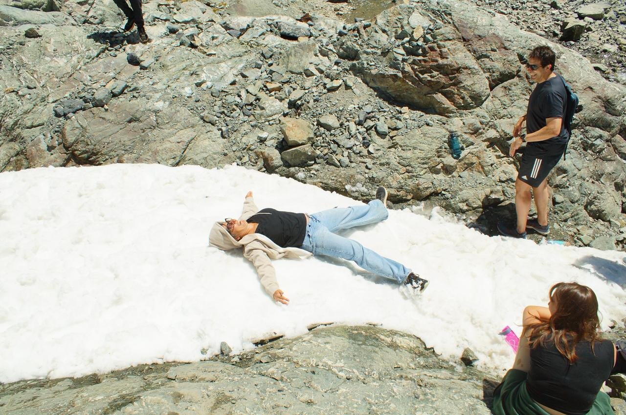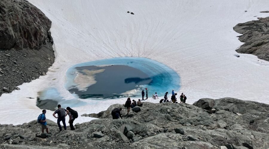 A trilha até a lagoa convida a um passeio tranquilo, acompanhado por guias experientes que conduzem o grupo por ar puro, vistas deslumbrantes e natureza exuberante. E ao final do caminho, lá está ela: uma lagoa congelada e serena, abraçada por imensas montanhas que parecem tê-la protegido desde sempre.