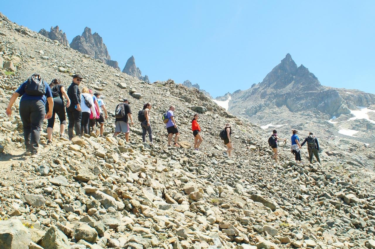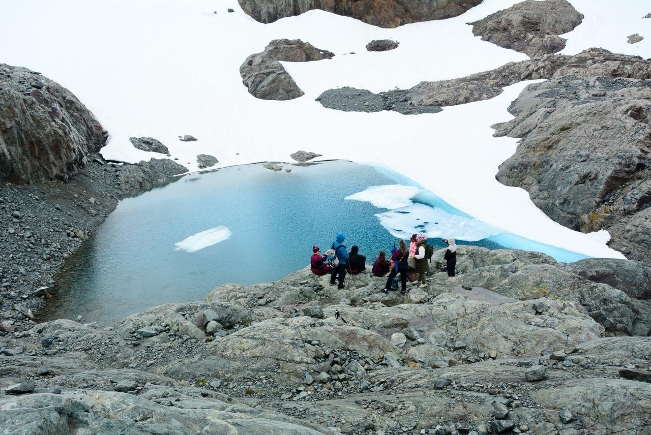 A partir daí começa a caminhada guiada, de dificuldade intermediária, que dura entre 30 e 40 minutos até chegar à Laguna del Ventisquero, que mesmo no auge do verão ainda conserva gelo na superfície e trechos de neve. O tempo gasto na lagoa é de cerca de 20 a 30 minutos, suficiente para apreciar a vista, tirar fotos e relaxar em um cenário natural único.